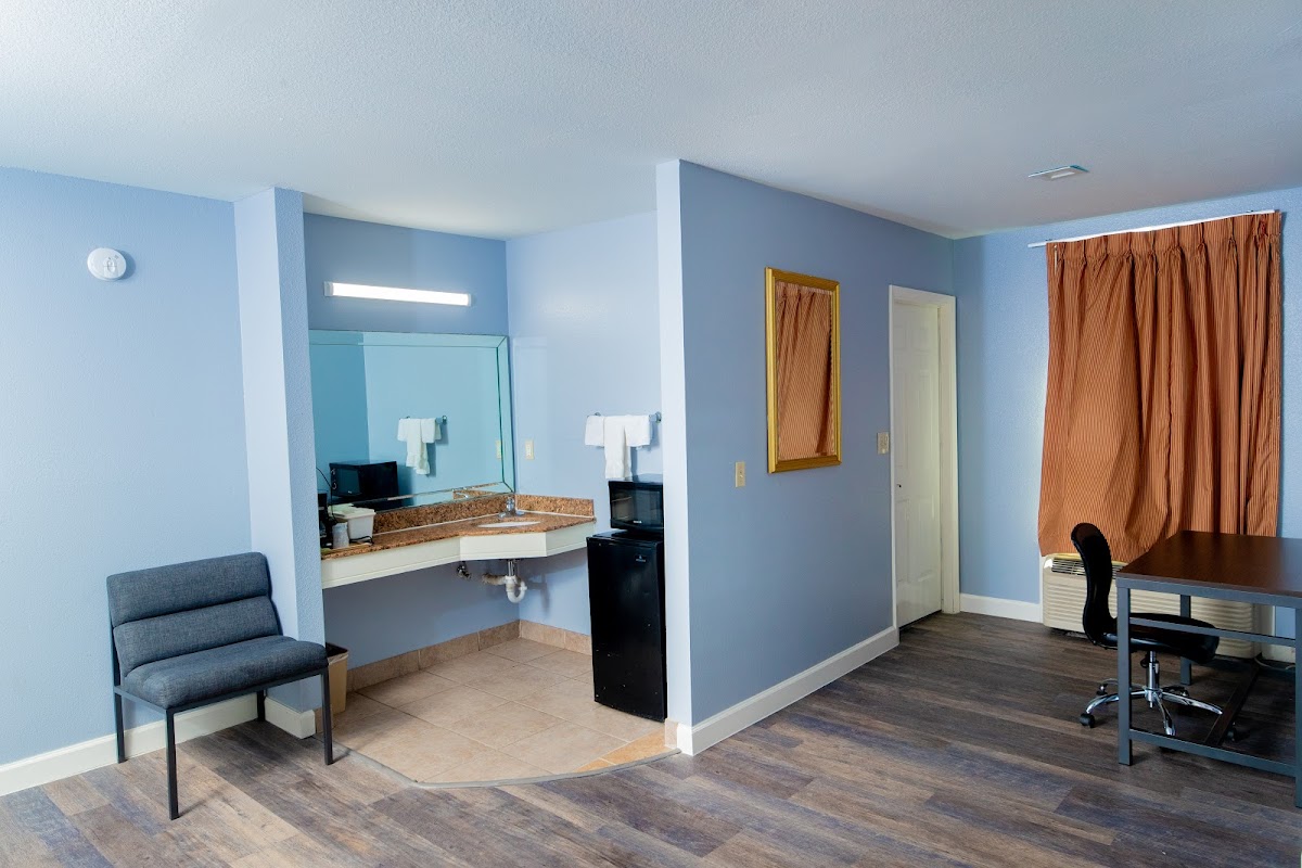 Nice room, no sink in bathroom though, it's around the corner in the kitchen area. Staff was nice. No hidden fees or crazy taxes. You get a carport with your room. It was quiet and calm. I think it's a bit over priced but they're rates are comparable to other hotels. It's also small, nothing fancy, but a nice clean seemed to be safe place to rest.